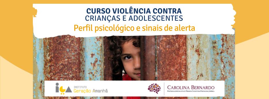 O Instituto Geração Amanhã em parceria com a psicóloga Carolina Bernardo, especialista em Terapia Cognitivo Comportamental, disponibiliza de forma totalmente gratuita, o curso “Violência contra crianças e adolescentes – perfil psicológico e sinais de alerta”, para todos os interessados em defender os direitos das nossas crianças.